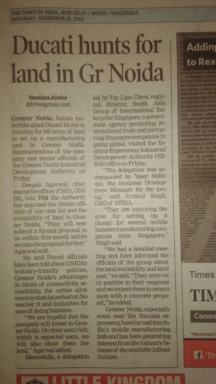 You are here: Home » News From Media » Ducati,the famous Mobike maker ,intrested in Greater Noida Ducati,the famous Mobike maker ,intrested in Greater Noida Updated on November 12, 2016 By admin Comments Off on Ducati,the famous Mobike maker ,intrested in Greater Noida Tweet By admin You May Also Like Tender To Join Jewar International Airport with Yamuna Expressway via 850 meters 6 lane Road for Rs. 5.11 crore is out. The wìnning contractor to start work in two months time Zurich AG uses Technology to beat COVID-19 and finish Project to start Jewar Airport operations on Time in 2023